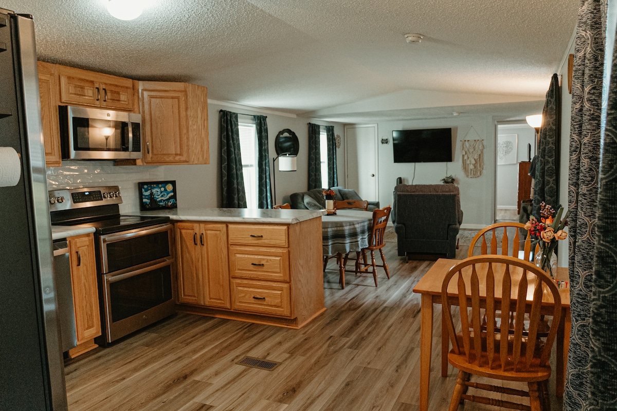 The Hideaway at Crazyman's is a peaceful, quiet setting nestled in 270 acres of woods, pasture & farmground. Get away from the craziness of your everyday world. Unplug & relax in the spacious, beautiful country home that overlooks a quaint pond and abundant wildlife. Get a full nights sleep in our soft, super comfy beds. Come on out & enjoy some time away.