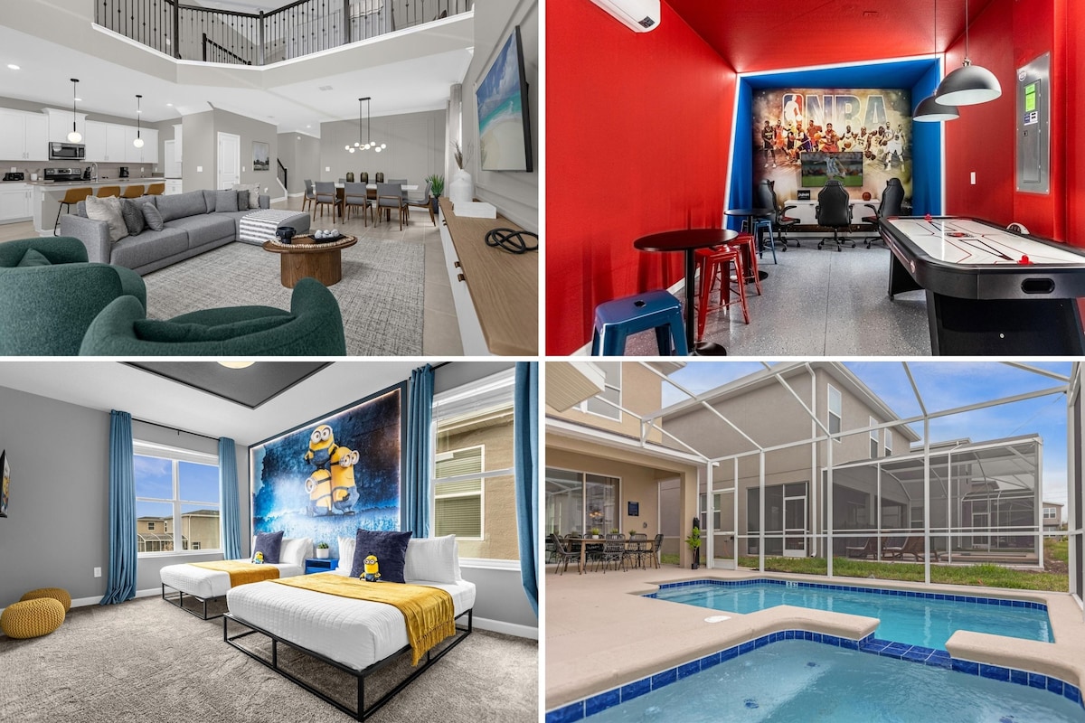 Amazing Brand New Modern Luxurious Home at Encore Resort @ Reunion. PET-FRIENDLY & Minutes to all Theme Parks. BRAND NEW HOME. Private Pool & Spa / Game Room / Movie Theater / Gym / Massage Chair / Fireplace / PS5 / Board Games & Much Much More Embrace the extraordinary and book your stay at our home, where luxury, entertainment come together for an unforgettable vacation experience. ** Please review the rules before booking. Waterpark access is not included. **