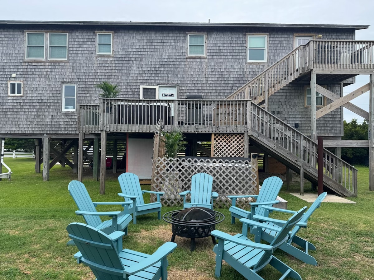Sound-Side retreat. Enjoy a sunset nestled in the cool, old, live oak trees. With a cozy bungalow style feel enjoy ocean living on the peaceful sound side. Large wrap around deck for star gazing. Beach access is a short 6 min walk for surf and beach fun. Close to grocery store, ice cream parlor, restaurants, coffee, and souvenir shops. Visit the Avon pier for fishing, concerts and farmers markets.