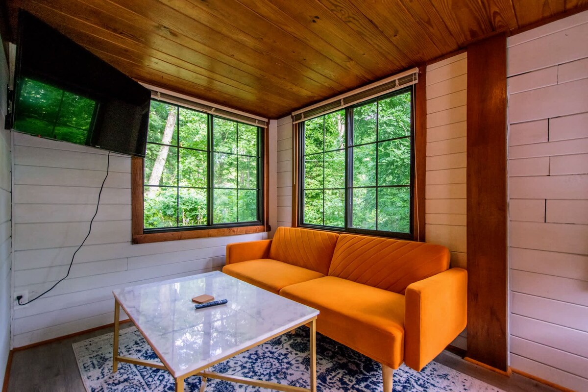 Situated above a fern-covered forest floor, The Treehouse at Fernwind is the perfect retreat for your next getaway. Built with your comfort in mind, this place has it all! Featuring a full bathroom with a walk-in shower and heated tile floor, a kitchenette, a living space, dining area, and queen bed, enjoy the pleasure of tiny space living in style! Located 10 minutes from Hendersonville and 25 minutes to Asheville, The Treehouse at Fernwind is perfectly situated to host your next adventure!