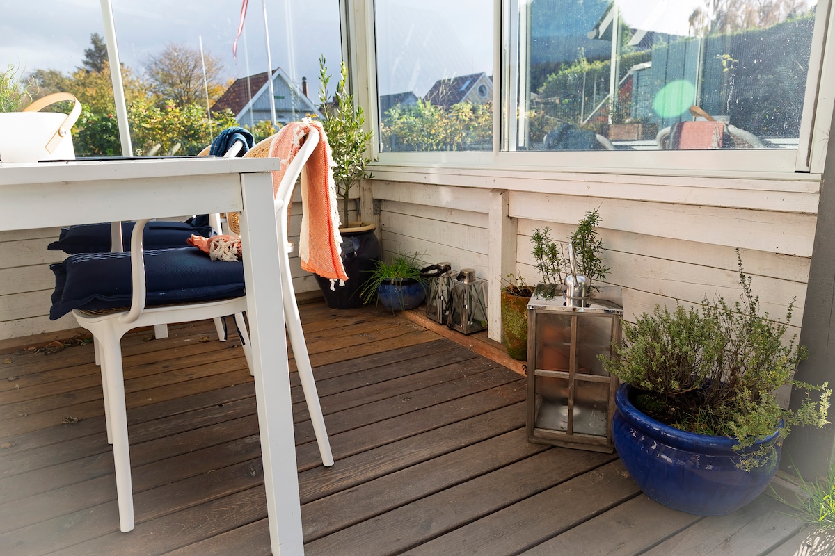 Staying in our 75 square meter vacation apartment gives our guests a very special sense of vacation. When you open doors and windows, the sounds of the forest, the garden and the sea birds flow in. A scent of fresh sea air meets your nostrils. Our guests also experience the light as something very special. Especially when the evening sun sends its rays down on the surrounding islands, you have to pinch yourself to make sure you're not dreaming.