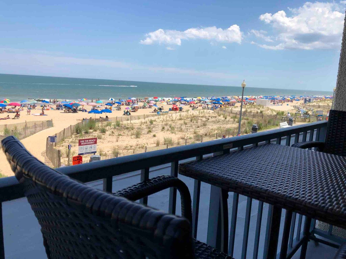 Our quiet ocean front studio has all the comforts of home with amazing views, a balcony hovering over a serene stretch of the Boardwalk, and is just steps away from restaurants, shops, arcades, rides and all of the best boardwalk foods! Walkable to everywhere in town! If you want to venture out further, a bike rental shop is just a few doors away! Enjoy a bike ride through town or to Dewey Beach. If you are looking for a scenic ride, enjoy the bike trails to Cape Henlopen State Park and Lewes.