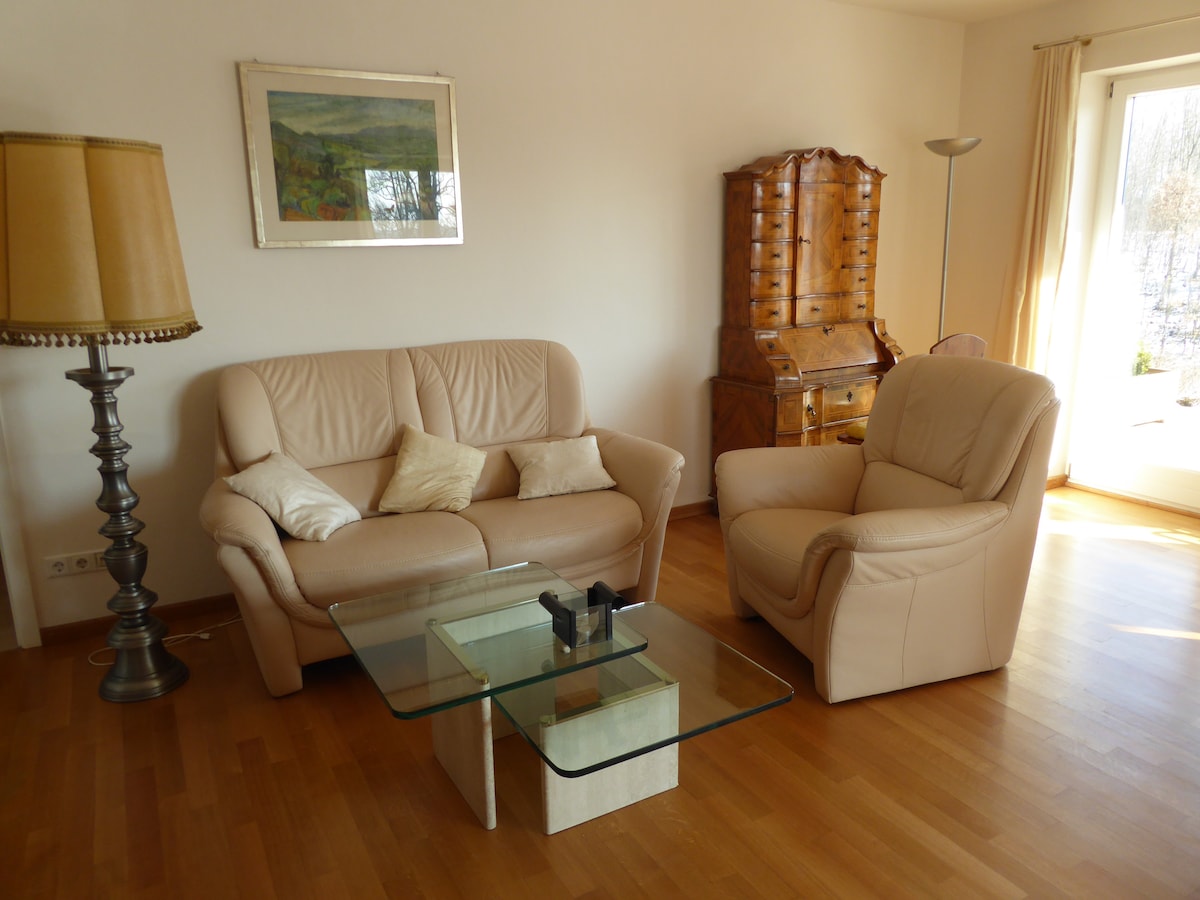 Modern apartment with luxury amenities that accommodates two people. Chic bathroom with large shower cubicle. Great large and quiet terrace just for our guests! Fully equipped kitchen! The Roche company is a 20-minute walk or 5 minutes by car. Super location in the Alps, only 40 km to Garmisch-Partenkirchen, 50 km to Munich or 100 km to Innsbruck, Lake Kochel and Lake Walchen can be reached in half an hour, Lake Starnberg and the Osterseen are very close!