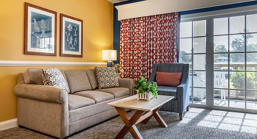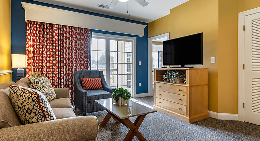 Situated along the Intracoastal Waterway in Myrtle Beach just minutes from the surf, Harbour Lights™ is the perfect place to base yourself from as you explore everything this seaside destination has to offer. Hotel Rooms, One- and two-bedroom suites and villas are perfect for family stays at this resort, where colorful pastel buildings, nautical villa décor and a wrap-around porch at the clubhouse exude a beachy, low-country charm.