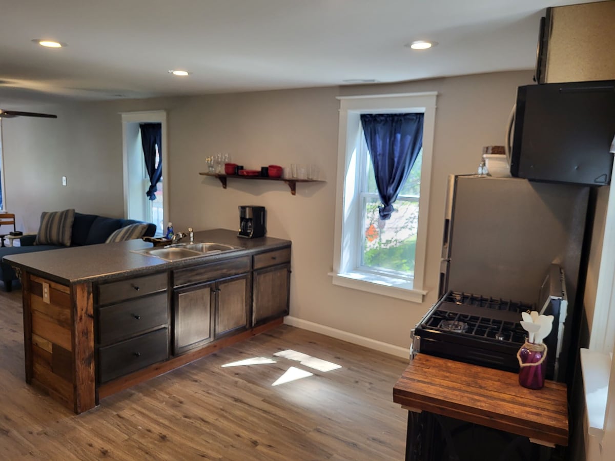 The ultimate tiny home retreat you’ve been waiting for. This 500 sqft carriage house was built in 1906! Lovingly and meticulously curated for a perfectly romantic stay. You’ll be a short drive from the always fun Fast Eddie’s Bonair or the gorgeous riverside views. Spend the day walking the Great River Road or trying local shops and restaurants. Looking to stay in? Your space has everything you need for a cozy meal in. Put on a record and relax in your private hot tub.