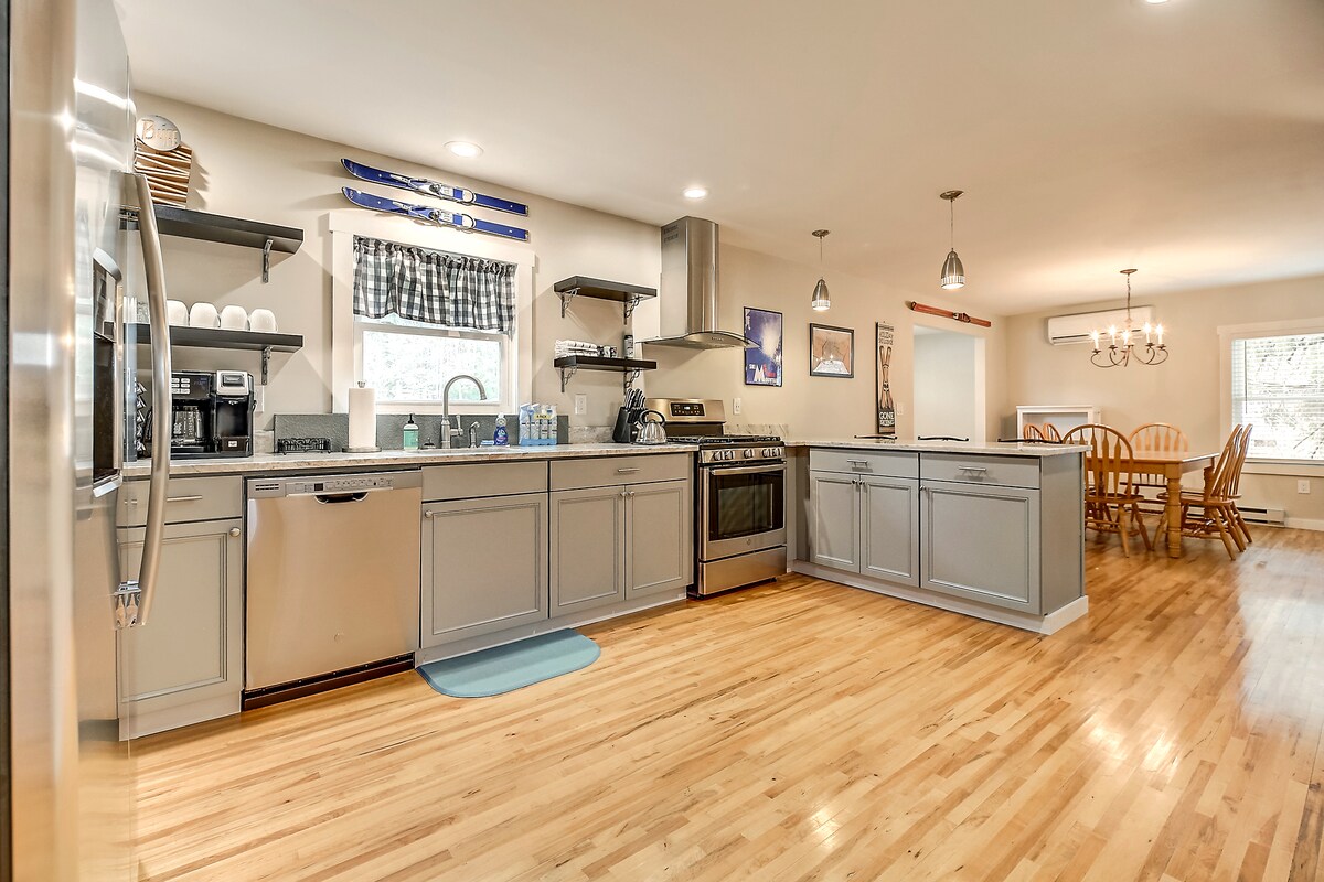 Escape to a beautiful ranch home in the Catskill Mountains, offering a spacious and open 2000 sqft layout with 3 bedrooms and 2 bathrooms, accommodating up to 7-8 guests. The property is surrounded by 90 acres of land with trails for hiking and biking, two ponds with freshwater fish, and stunning mountain views. The house is bright and airy with large windows that frame the beautiful scenery. It features a mix of rustic and modern decor and amenities, creating a warm and inviting atmosphere.