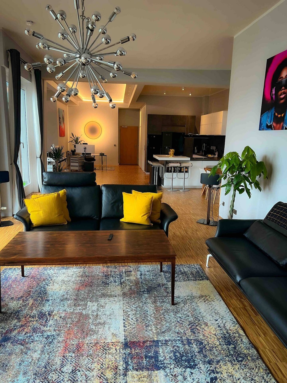 The exclusive loft directly on the banks of the Spree in hip Kreuzberg is located in a former jam factory. Located directly on the banks of the Spree, it impresses with its direct water view. On the spacious balconies on the 5th floor, you can enjoy unique Berlin sunrises and sunsets. The view of the East Side Gallery and the Oberbaum Bridge is unique. The apartment offers plenty of space to chill and is perfect for athletes – with a swing and a private gym.