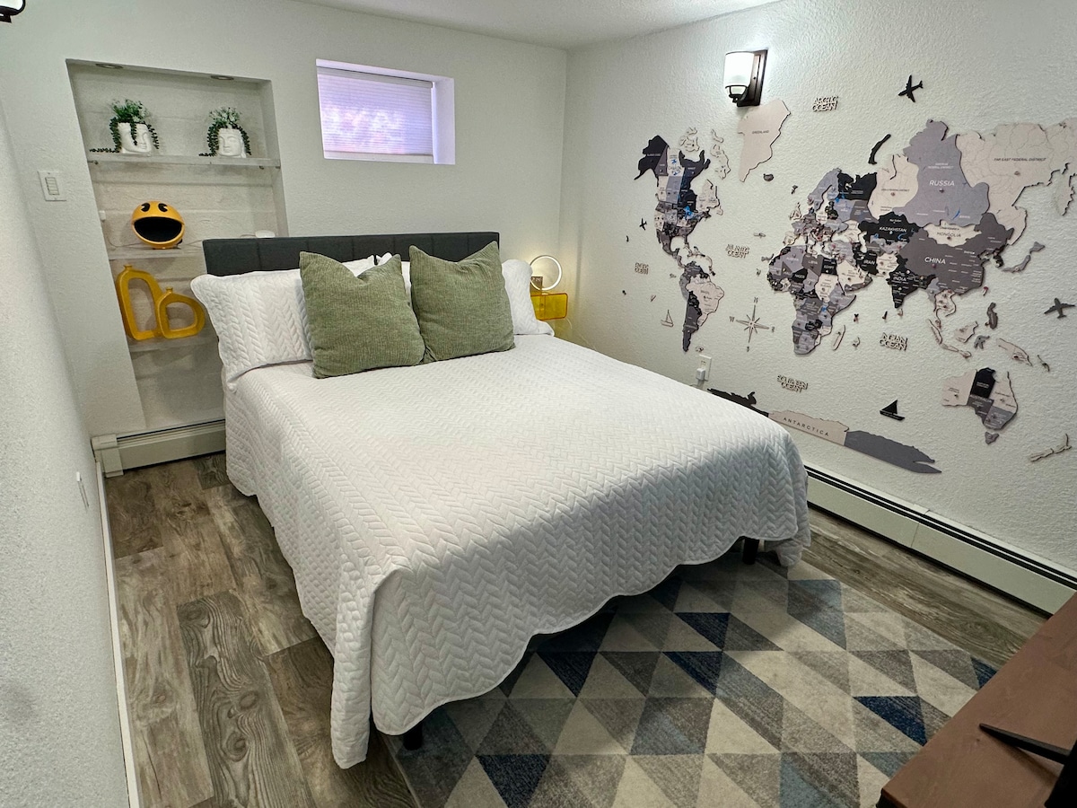 Private Attic room with private bathroom and private entry on the third floor of our home. Comes with a reclinable queen sized bed, smart TV w/free Wi-Fi, mini fridge, a dining table for 2. Lots of steps up to get to your unit. If you have heavy luggage ask me for help. Perfect for solo travelers who just need a comfortable bed and a clean space. Active family lives on the second floor who sleeps early. Quiet hours 10pm to 7am are extremely important for us. No visits allowed.