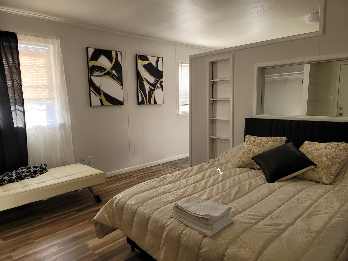 Enjoy the perfect blend of comfort and convenience in our enchanting tiny home. Just steps from Walmart, coffee shops, and restaurants. Near wedding venues, this retreat offers easy access to everything while maintaining privacy and tranquility. Recently renovated house and new cookware. Its stylish design creates a cozy, functional environment perfect for work, or relaxation. Whether visiting for business, a wedding, a peaceful escape, our tiny home promises a serene and memorable stay.