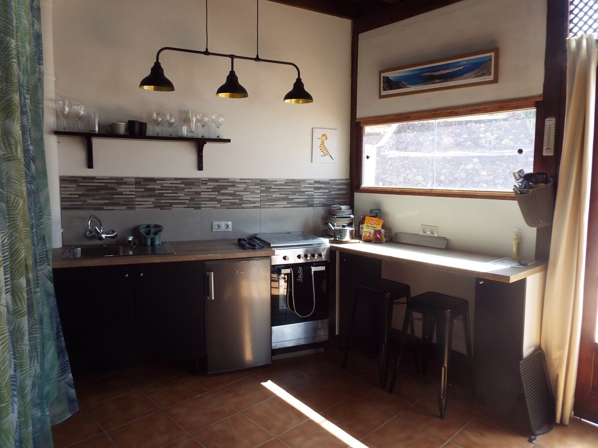 La Sala de Jardin - The Garden Room - a unique and perfectly equipped studio annex for 2 people with own separate entrance and totally self contained. With direct access to a beautiful garden space and solar heated salt water pool measuring 7m x 3.5m. Solar power for house also. The garden enjoys the stunning backdrop of an iconic Lanzarote volcano. Quite often on the hillside you will see local wild goat family at play. Although described as tiny home by airbnb - this is not cramped space.