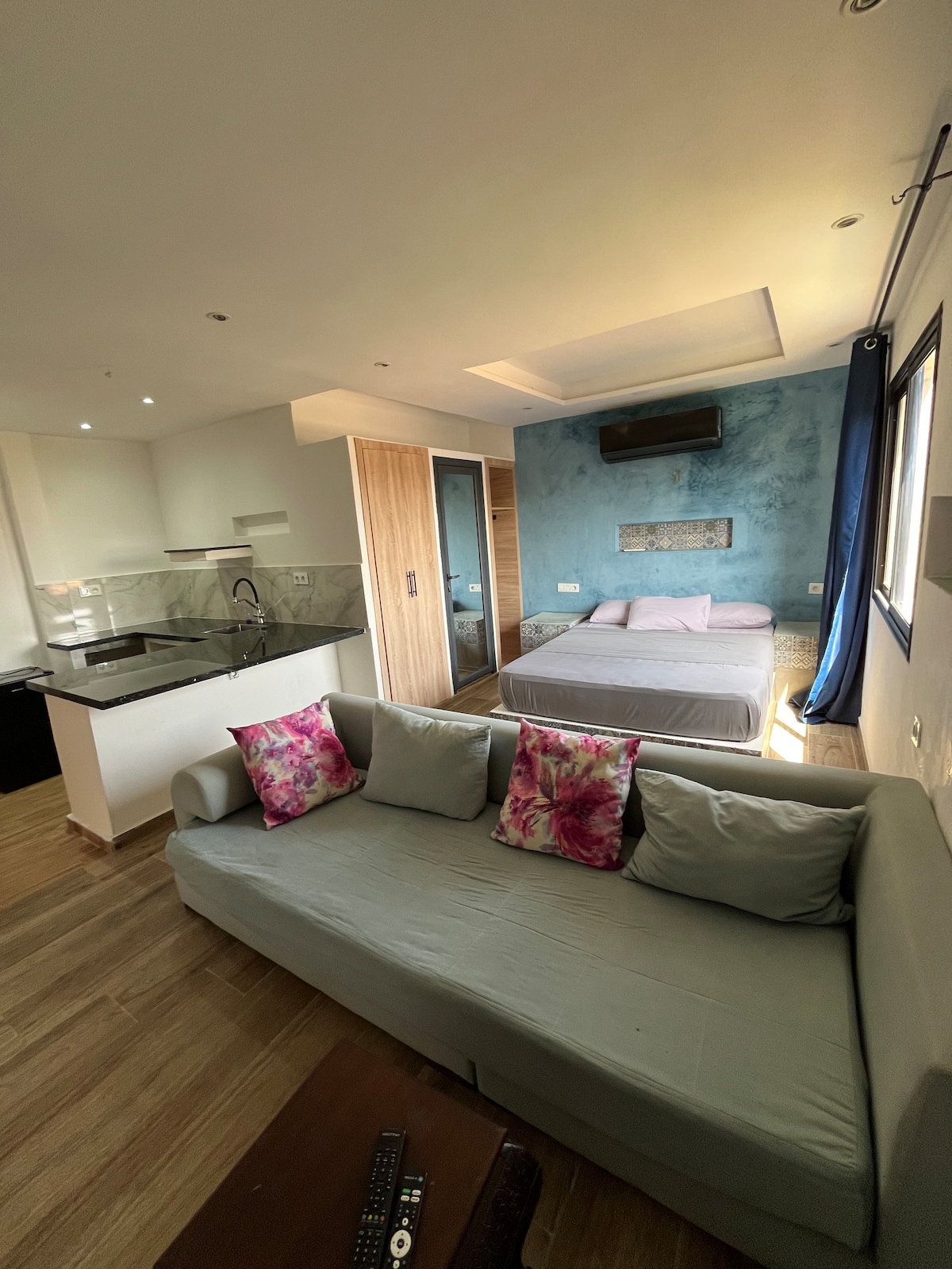 Profitez de votre séjour dans un appartement moderne et bien meublé à côté de toutes les commodités d'une nouvelle résidence. Il dispose d'une chambre équipée d'un home cinéma 4K, d'un salon, d'une salle de bain, d'une cuisine américaine et d'une petite terrasse. En plus, une connexion Internet 5G est incluse pendant votre séjour. Marrakech vous accueillera toujours. 😊