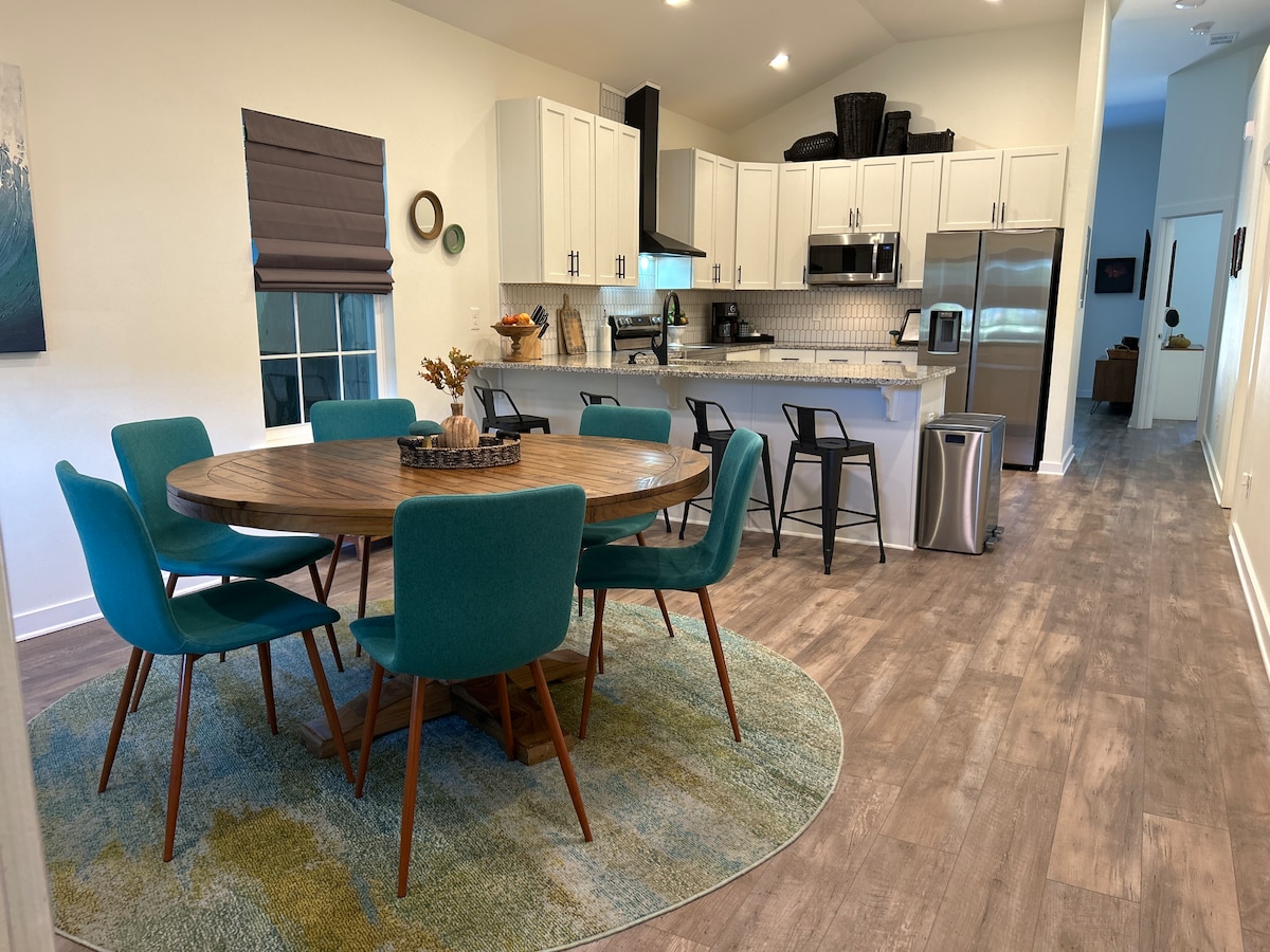 Book your memories at this convenient locale! 10 minutes to Navarre Beach; this single-floor 2060 sqft modern layout keeps everyone safe with all the clean space. Sleeps 6 and Seats up to 8 for great family dinners. The 4 bedroom & bathroom converge to a large vaulted open Kitchen/Great Room living area. Privately wooded .50 acre property right off East Bay Blvd for quick access to shopping, golf, breweries, and the white sand, make this home central to relax after a long adventurous day.