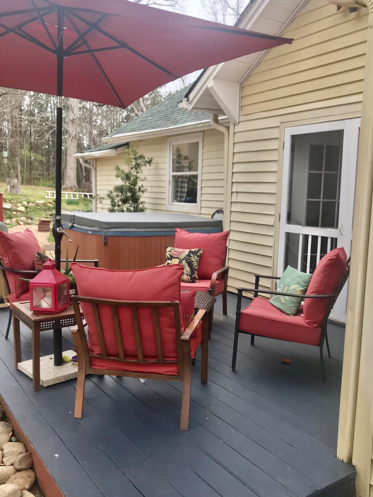 As you enter the screened in front porch you will instantly relax, experience a peaceful and quiet tree lined front yard. The house has plenty of shade and old oaks, built in 1935 has the charm of visiting great grandmother’s farm house without the wallpaper. Large side deck with grill, hot tub and plenty of shaded sitting. Side yard has a fire pit for evening campfires and roasting marshmallows. The house has an open floor plan.