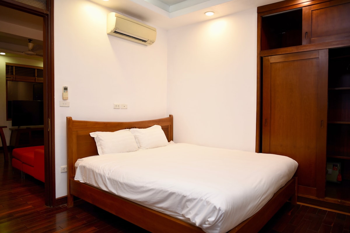Welcome to Thaicom Apartment, your perfect home to experience the charm of Hanoi right from its heart. Our spacious 70 m² one-bedroom apartment is thoughtfully designed with private balcony, offering both comfort and tranquility. The space combines modern amenities with warm touches, ensuring a cozy stay. Located on the 4th floor with an elevator and free motorbike parking, it’s quiet and private yet only minutes away from the city’s vibrant life.