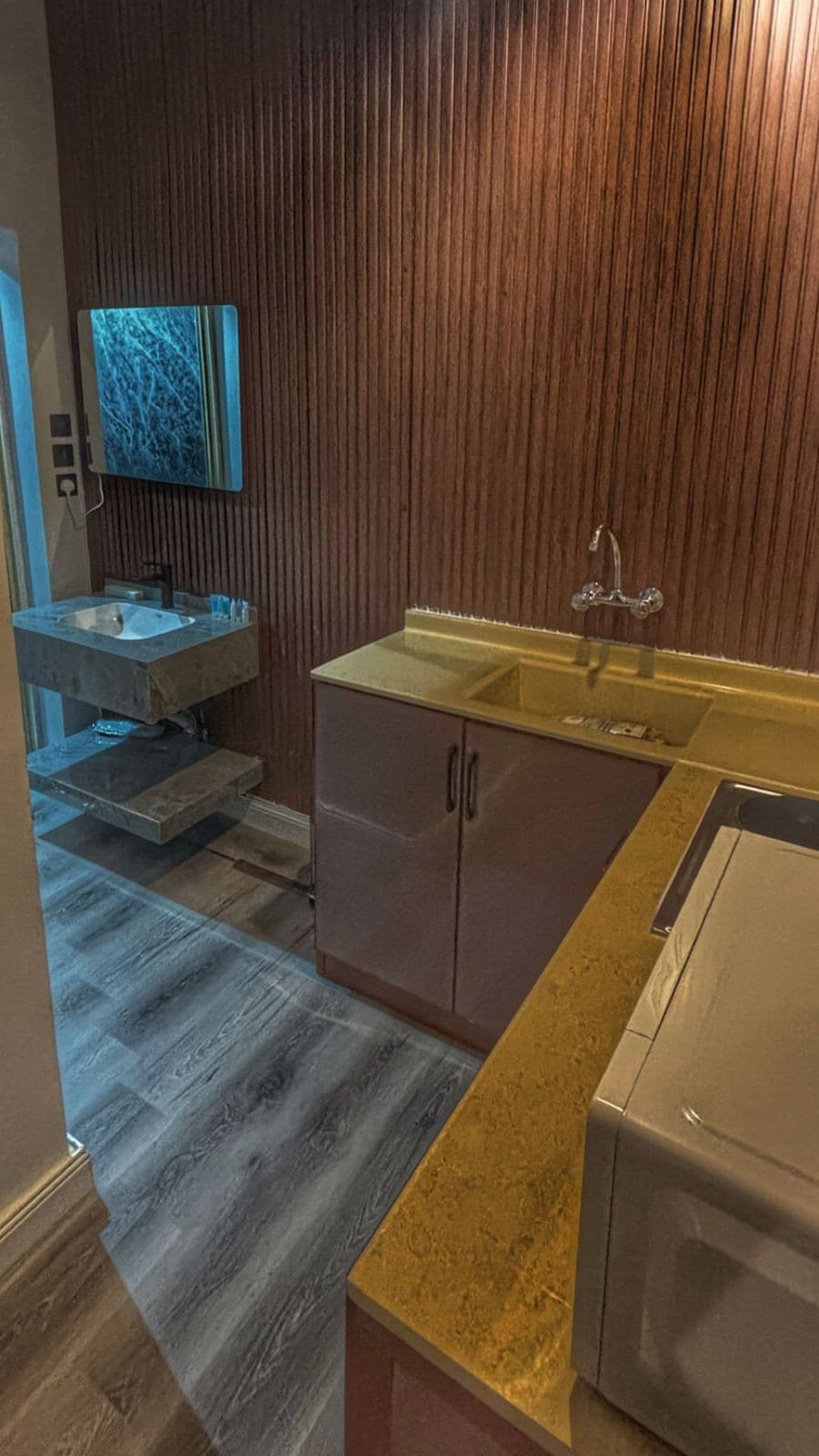 A 3-room hotel apartment with a separate entrance, comfortable, with self-check-in without reception, one of the best options to resort to after a long working day, and spend the night hours in comfort and relaxation until the next day.