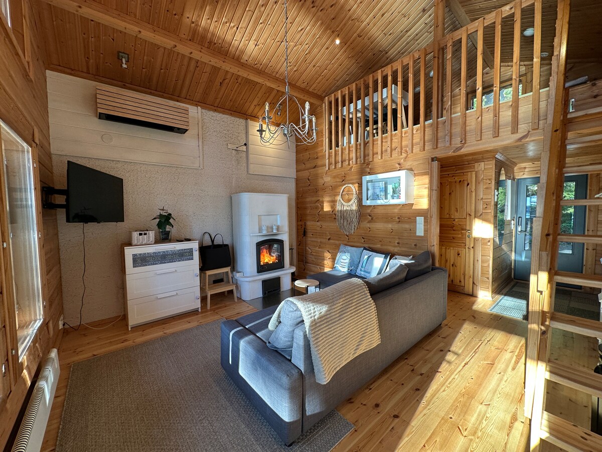 Upscale log villa by the lake + beach sauna