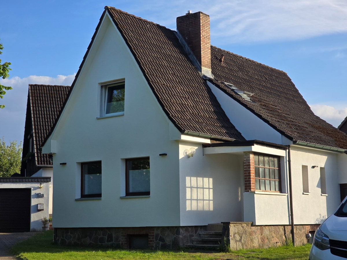 Dear guests! We are glad that you are interested in our apartment. In this apartment of over 120 square meters in Over, Seevetal, you are about 700 meters from the Elbe. In addition to walking distance to enjoy nature (hiking trails, nature reserve, beach with swimming), you are by car in about 25 minutes to downtown Hamburg. A bus stop is just a 2-minute walk away. A large supermarket with a bakery and an Italian restaurant are about 1 km away.