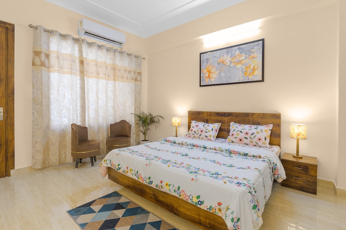 Experience refined comfort at The ManStays—featuring a thoughtfully assembled 2 BR. Apartment is comfortably outfitted on the 1st floor. Nestled between Rajaji’s lush expanse and the sacred Ganges, our certified homestay invites you to embrace slow living, nature, and quietude. Approved by Uttarakhand Tourism, it’s an authentic escape from the city’s rush—safe, soulful, and truly restful. Thoughtfully furnished and curated with a boutique charm, it's unlike any commercial stay in Haridwar.