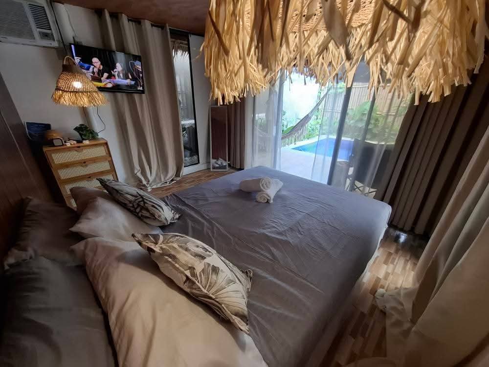 A stylish 2-storey home featuring 4 air-conditioned bedrooms (king, bunk, and 2 twin doubles), 3 bathrooms with hot showers, a private pool, a grassy yard, and bamboo shade. It includes a fully equipped kitchen, secure parking for 6-8 cars, and minimalist elegance in Recreo Pontevedra, just 1 hour from Bacolod—perfect for families or small groups.