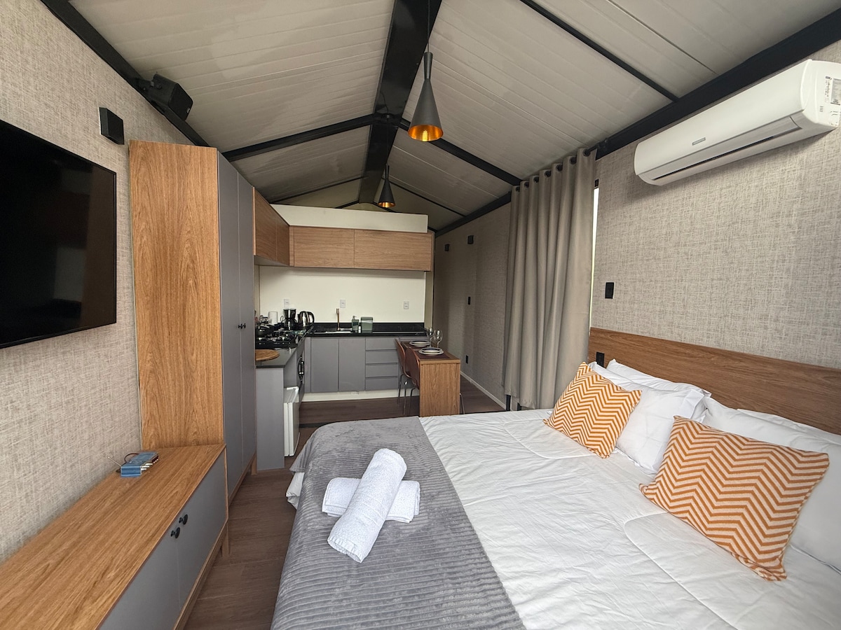 CABANA STUDIO R+M Accommodation for up to 2 people. Comfortable environment integrated with nature, space designed for leisure and personal work with the essentials for lodging. Autonomous Unit with Auto-Check-in. I will be available during your stay, via mobile phone or via Airbnb. • Extended check-out on Sundays courtesy!!!! •