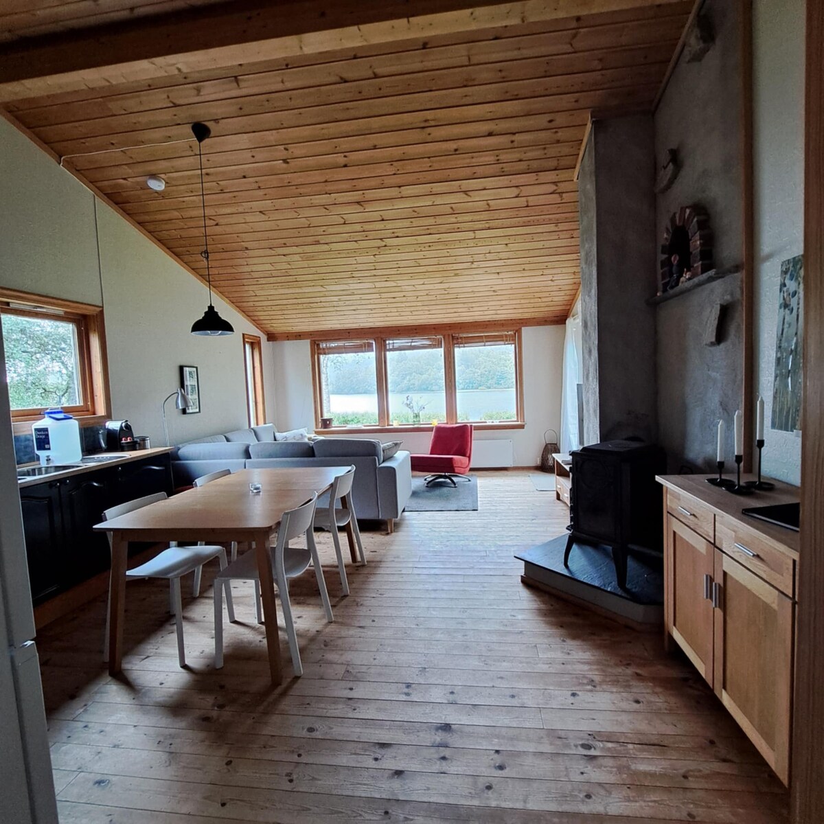 Discover the charm of our unique tiny house, Brakkebu, perfect for adventurous travelers. This modern tiny house combines comfort and functionality in a cozy environment. You will find a bright living room, a fully equipped kitchen and a comfortable bed for a good night's sleep. Enjoy your morning coffee on the private terrace or take a walk in the beautiful nature. Hot tub, 2 paddle boards, fishing rod, games for indoors and outdoors, ++ included in the price :) An EV charger can be rented for CAD 250 per 24-hour period. From about April 1, 26, we also have canoes