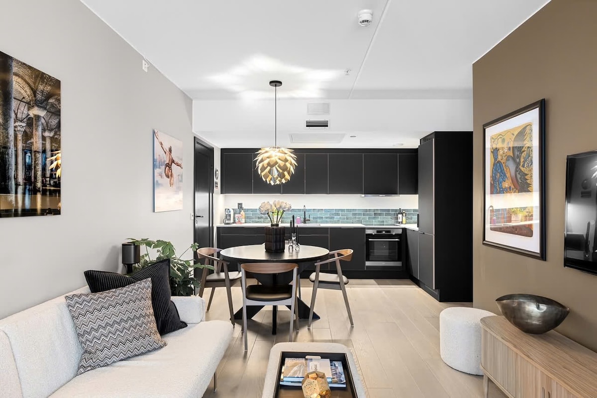Welcome to your home away from home - a bright and cozy apartment located in the heart of Oslo! Just steps away from Oslo Bus Terminal and the Airport train. This space is ideal for couples, small families, or friends. It features one comfortable bedroom and a quality sleeping couch in the living room - perfect for up to 4 guests. You’ll be within 5 to 10 minute walk from top attractions like the Oslo Opera House, Bjørvika, Barcode, Munch Museum, and shopping and dining spots.
