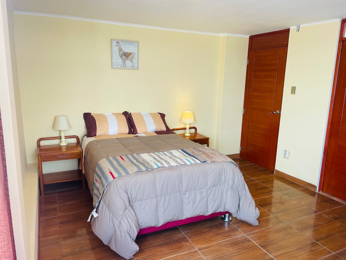 Enjoy a quiet flat and rooms in Hyo, ideal for short or long stays. Located in a safe and central area, with quick access to the financial area, land terminal and 2 blocks from EsSalud. We offer private rooms, independent bathrooms, equipped kitchen and terrace. Ideal space for groups, students, families or workers. Spacious, ventilated and functional environments. Includes Wi-Fi, hot water, and bedding. Host available to help you. Make yourself at home.