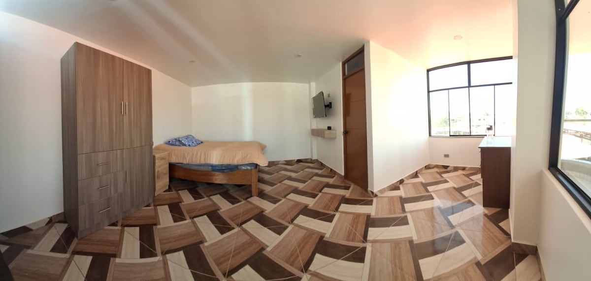 Located in the heart of Huancayo, we have Executive Suite environments ideal for tourists and executives looking for a welcoming atmosphere, where their safety and the comfort they deserve predominate. We have WiFi Cable TV, Netflix, Disney, HBO Max, kitchenette q has Minibar, Oven, blender, kettle, kitchenware. In addition to hot water and 24 hrs security We have all the hygiene protocols for your health Airport pick up service, laundry, and tourist information of the area.