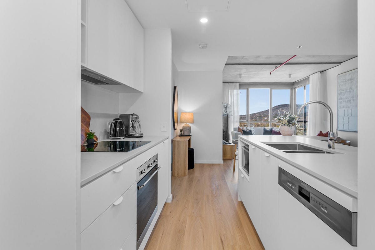 The apartment is spacious with a unique industrial style fit out which features exposed brick, 3.4m high concrete ceilings and exposed pipework. The home includes engineered timber floorboards throughout which adds to the industrial feel. Double sliding doors opens up to a covered balcony with views that look towards the Brindabella's. Originally built in the mid 1960's and used as Government Offices, in 2020, they underwent a rebirth into these stunning warehouse style residential apartments.