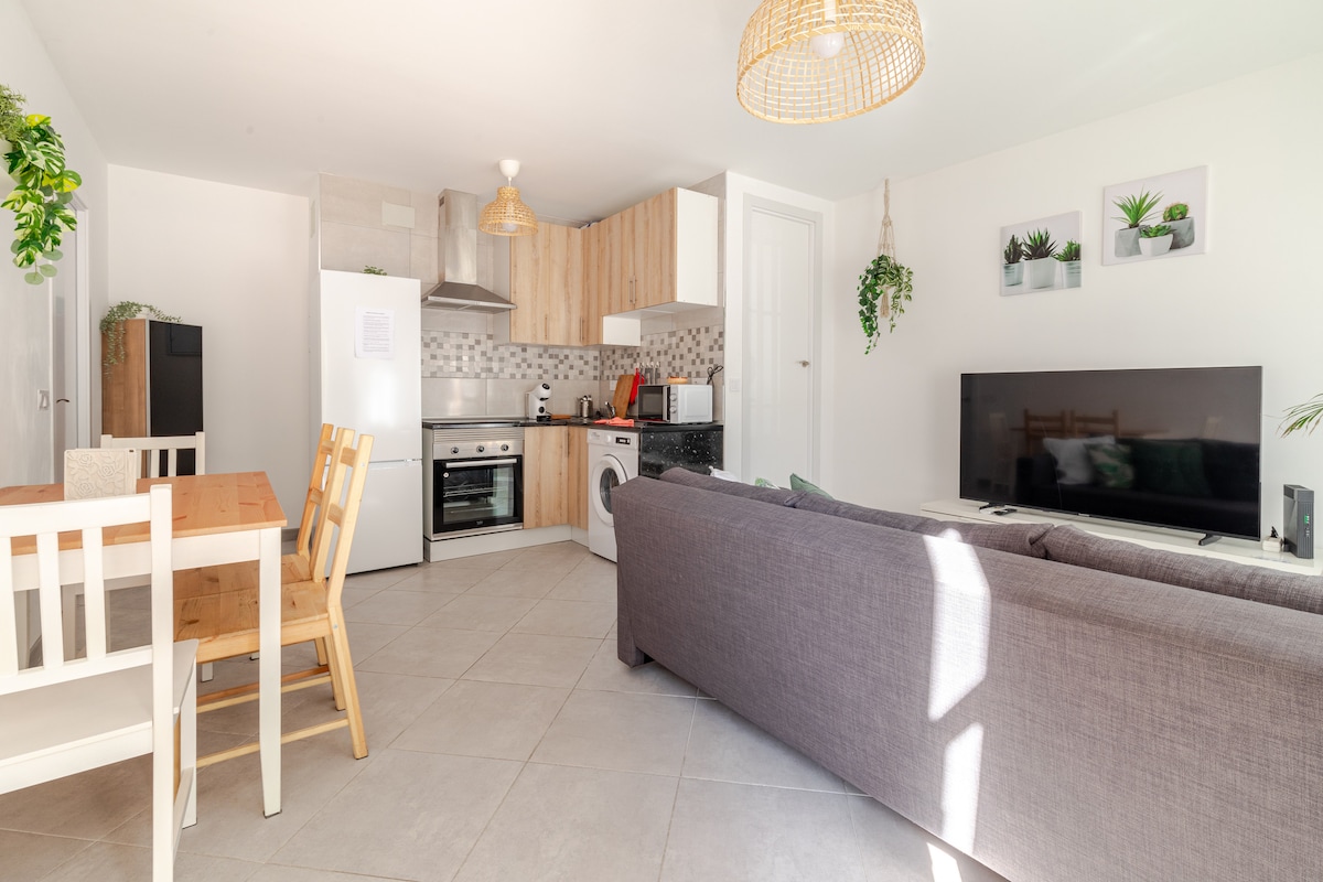 Beautiful apartment, very bright, with a spacious living room with a kitchenette and a large, fully furnished outdoor terrace. Very good situation to visit Madrid capital with nearby public transport. It has very easy access by car to visit the rest of the Community of Madrid and neighboring provinces. Ideal for three people. It has two large bedrooms and two bathrooms. An additional person could be accommodated on the sofa bed in the living room.