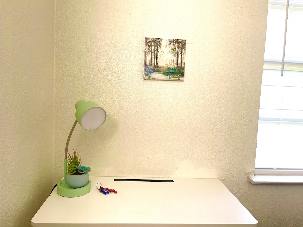 Discover the allure of our newly renovated home, presenting an exclusive bedroom with a luxurious king-size bed, an HD TV equipped with Roku, and rapid WiFi and ethernet connectivity. Experience the simplicity of a coded lock system, granting effortless entry. The shared kitchen awaits your tasty meals. 2 shared bathrooms are conveniently located close by. Get the job done with a desk & chair. Immerse yourself in the splendor of Irving, & enjoy our sprawling neighborhood park and walking trails