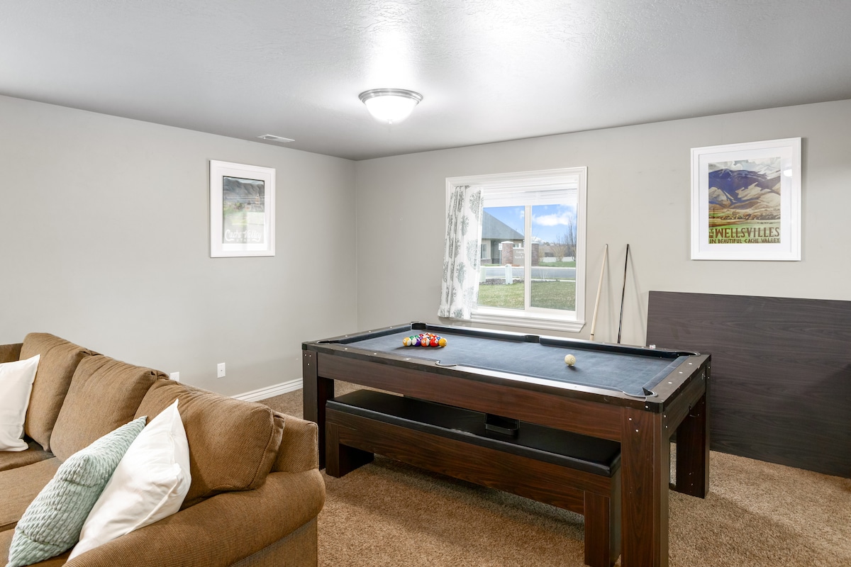 Our home is 100% smoke free so I’m sorry we can’t accommodate groups with smokers. The entire walk out basement with a private entrance is yours to enjoy. We are close to two ski resorts, Birch Creek Golf Course and beautiful mountains and canyons. Located in a peaceful neighborhood. Play during the day and relax at night in our state of the art theater room with 12 recliners. The full kitchen and large living area is the perfect area to kick back and relax.