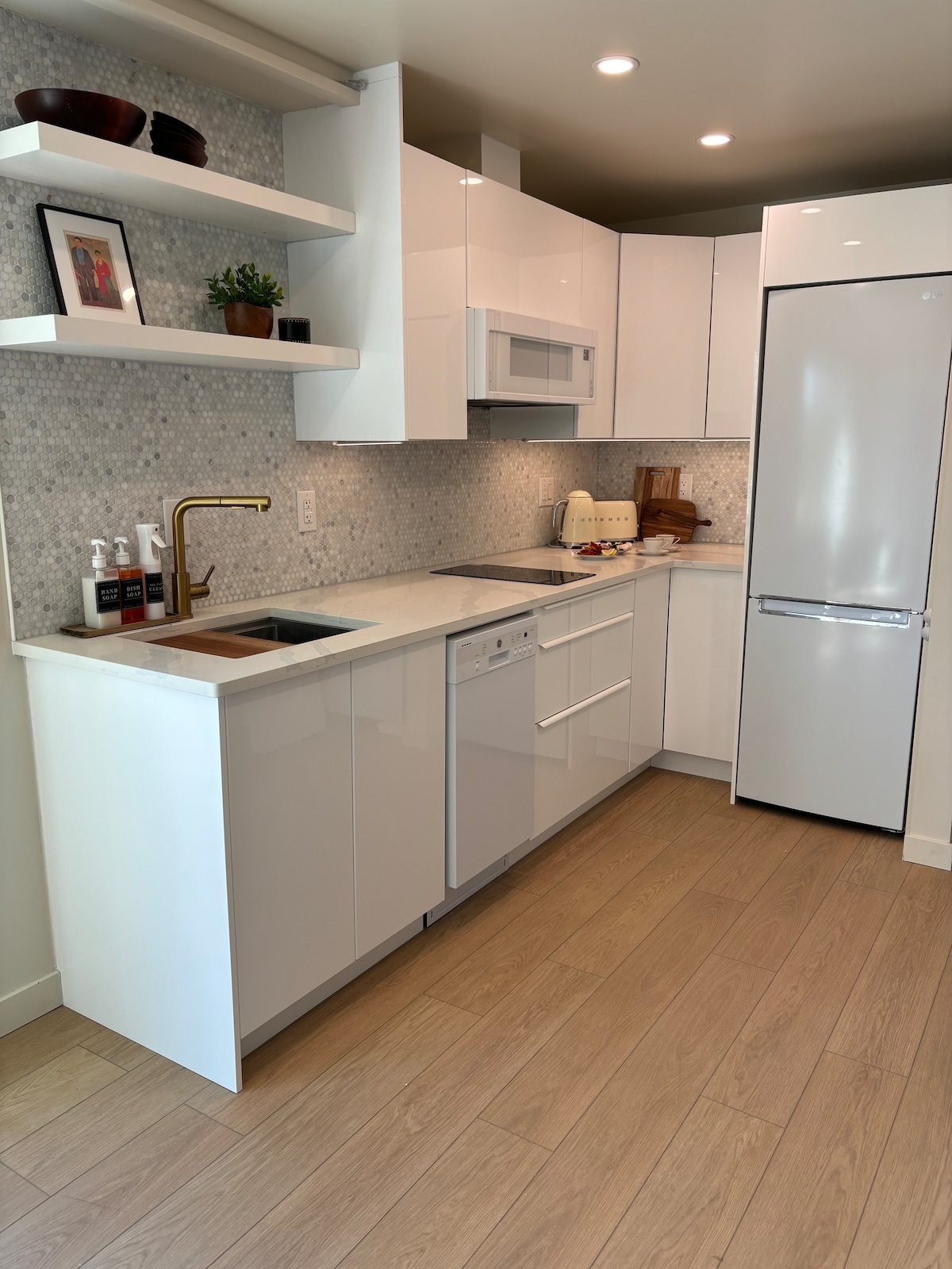 A luxurious one bedroom suite boasting unobstructed views of Okanagan Lake from EVERY room. Only a five minute drive from idyllic golf courses, world class wineries, and some of the best hiking trails in the province. You could be hiking Mount Boucherie in the morning and sitting on the patio at Mission Hill winery at sunset, walking along the lakeshore, or sitting on your own private deck listening to the iconic bell toll while watching the sun sink down into the glittering blue of the lake.