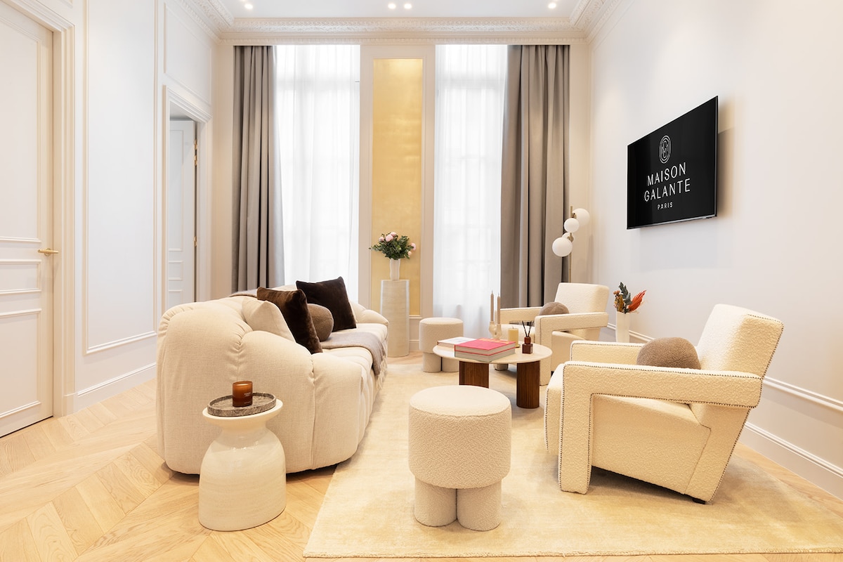 Welcome to your luxurious home away from home, perfectly situated in the heart of Paris, just a few minutes' walk from the Louvre, the Opera, and the Seine. This stylish and contemporary apartment features 4 separate bedrooms, providing a peaceful retreat in the city. The open living area is perfect for unwinding, with a comfortable sofa and a dining table for enjoying meals at home. Ideal for up to 10 guests, this flat combines modern comforts with the timeless charm of Parisian living.