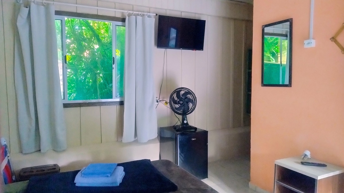 We have a simple and well located house in Praia de Encantadas. Containing a room with television and air conditioning + common bathroom + space for meals (sink, electric stove, refrigerator and kitchen items). The land is private, there are 150mts from the embarkation/disembarkation pier and the main beach; close to markets, bakery, restaurants and other shops. **We do not provide groceries and personal items such as: bath towels, soaps, toothpaste, etc.