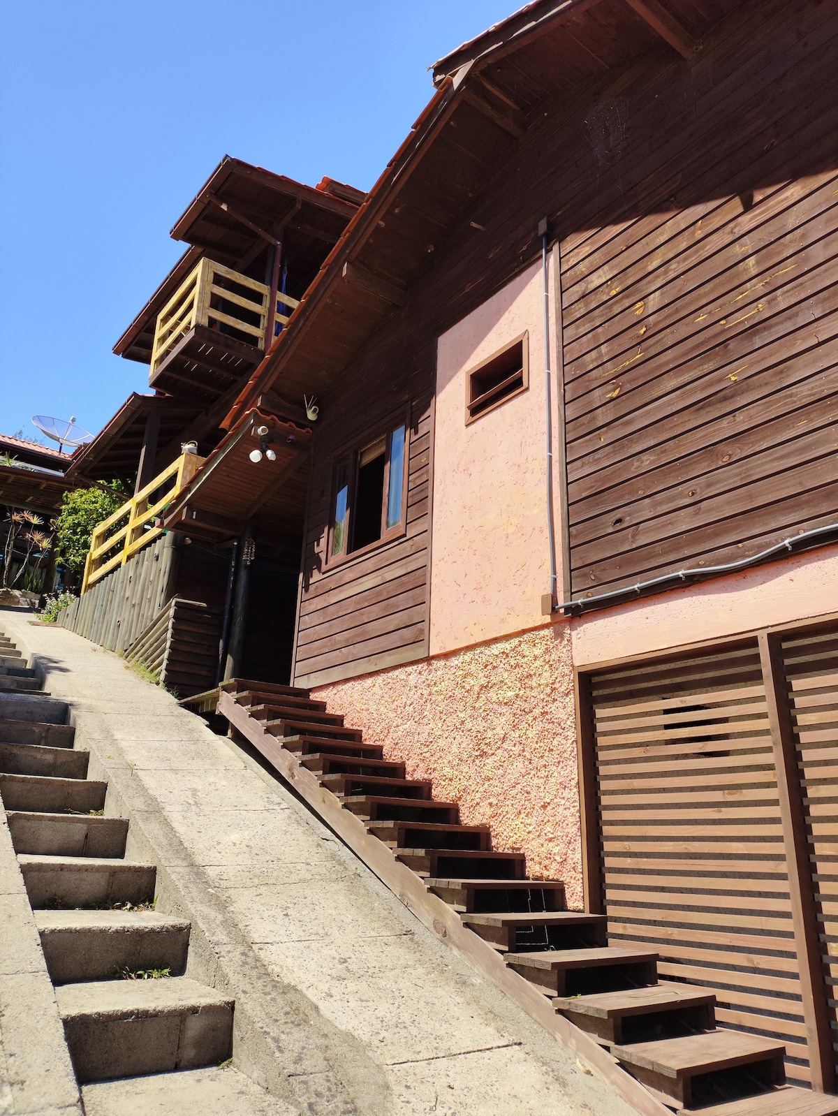 Chalé no alto do morro próximo do mar e com a uma vista das montanhas e dunas que proporciona um fim do dia com o por do sol maravilhoso,acesso a praia dos amores e d'água por trilhas . Ambiente muito agradável e seguro, com ar condicionado e wifi. estamos localizados em Imbituba na praia da Ribanceira 5 minutos da barra de Ibiraquera 10 minutos praia da vila 20 minutos da praia do rosa isso usando o carro.