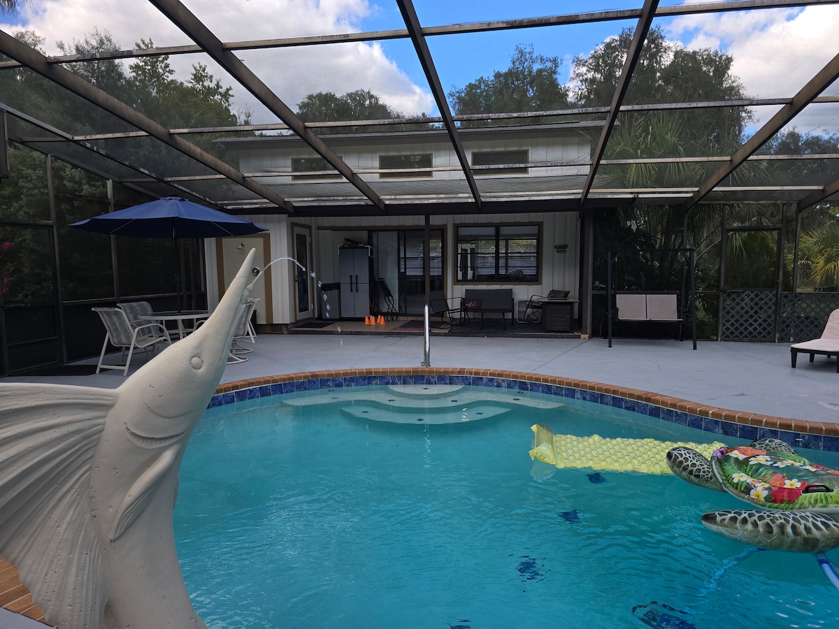 Our tranquil getaway! Whether on vacation or traveling for work, this is the place to stay! With a beautiful pool and gigantic screened in area with comfortable patio furniture and a place to have your meals outside, you can't beat our guest house for enjoying Florida's weather. Inside, we have just added a stunningly comfortable new Queen sized bed with a "Purple" mattress on an adjustable frame. We have hi speed wi-fi and a large screen TV with Amazon Prime, Netflix, and more.