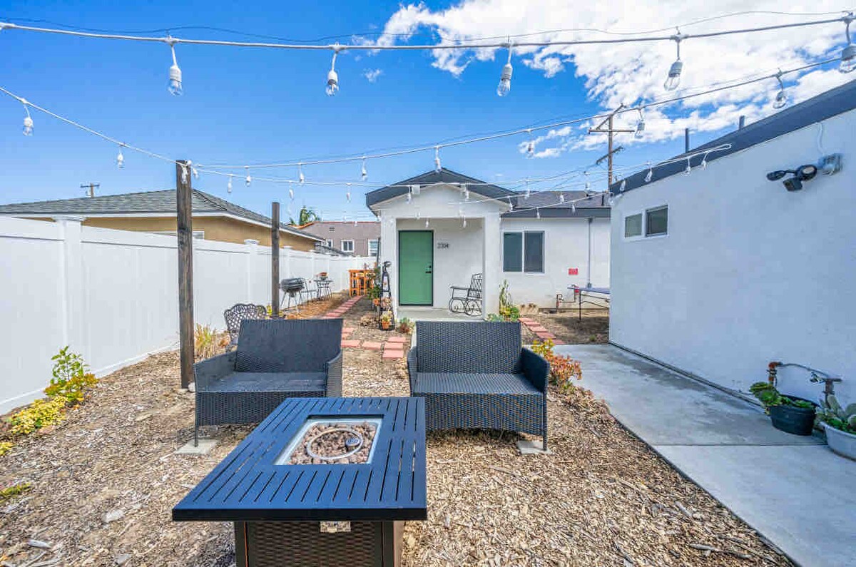 This 1-bedroom/1-bathroom house- 50min to SoFi Stadium. Built in the early 1940s, its decor is a nod to that era's timeless charm. Blackout drapes enhance the sleeping areas for a restful night's sleep. The beverage bar features ample cabinetry, an accent wall with backsplash, and unique open live edge shelves, crafted from the old avocado tree that once graced the patio. The patio has since been transformed with outdoor furniture, making it perfect for leisurely moments outdoors.