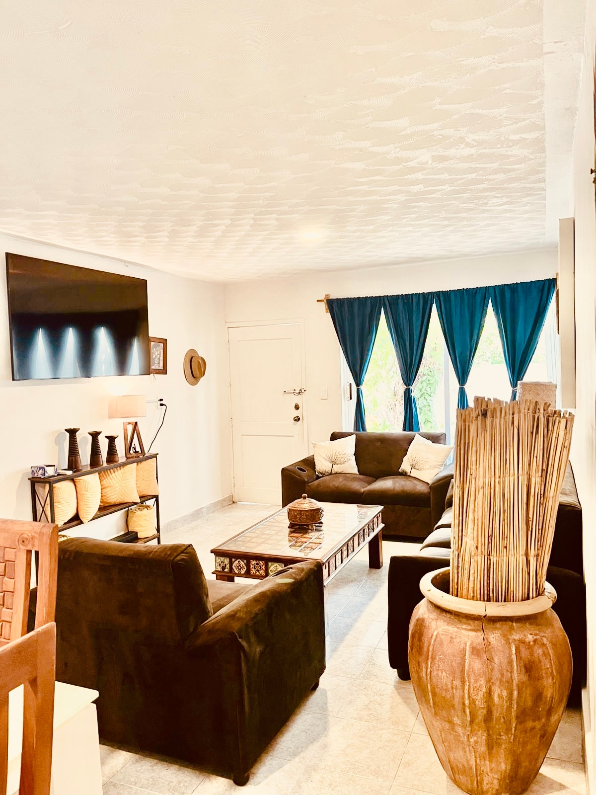 Departamento en la mejor zona para disfrutar de este paradisíaco lugar. Un hermoso espacio cómodo, en planta alta para 5 huéspedes, no necesitas vehículo para disfrutar de la famosa Playa Norte, reconocida por sus aguas cristalinas y blanca arena; la zona comercial y el malecón del Mar Caribe. A unos pasos del embarcadero, cancha de basket, iglesia y supermercado. Espacio tipo loft luminoso con un pequeño pero encantador jardín a la entrada. En el corazón de Isla Mujeres
