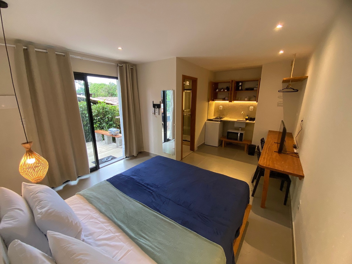 Exclusive studio in Itacaré, unique with covered garage space. Newly opened, the project contains refinements of modernity and functionality to better receive its visitors. Condominium and apartment access locks through passwords and/or biometrics. Close to the main bars, restaurants and beaches. full apartment prepared to provide the best experience in Itacaré. come enjoy this paradise !!!