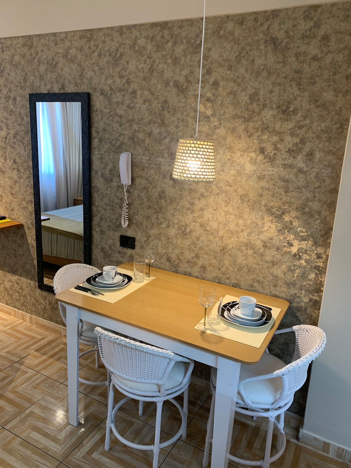 Small apartment about 550 meters from the beach, with a king size bed, full bathroom and kitchen area with utensils. There are 4 small private apartments, which are on the first floor of my property with access by stairs and private entrance. I live on the ground floor, but guests will have privacy (as in a residential building) as my house is completely separate from the apartments. WE DO NOT HAVE A GARAGE (guests can park on the street in front of the property)