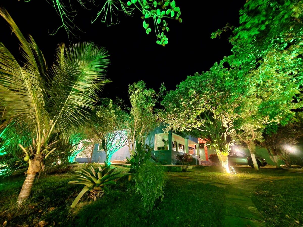 Beautiful and cozy house with easy access to the city's main points. It has accessibility, with two bedrooms, one with air-conditioning, a double bed and a bunk bed, and the other with a double bed and a fan. Large living room, grassy backyard, spacious veranda with hammock, perfect for relaxing. Full kitchen, laundry and a bathroom. Ideal for those seeking comfort and tranquility.