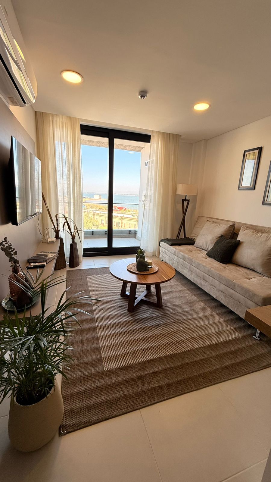 Apartamento con balcón vistas al río y excelente ubicación!📍. A pocos pasos de la Costanera, Playa San José🏖️, restaurantes🍴 y de Shopping Costanera 🛍️. Habitación principal con cama matrimonial 🛏️, sala con sofá cama(2.10 x 0.95 x 0.92) 🛋️, comedor, cocina integrada y baño moderno 🚿 Seguridad 24/7 🔒 y servicio de lavandería dentro del edificio para tu comodidad. Aires Splits en habitación y sala-comedor.