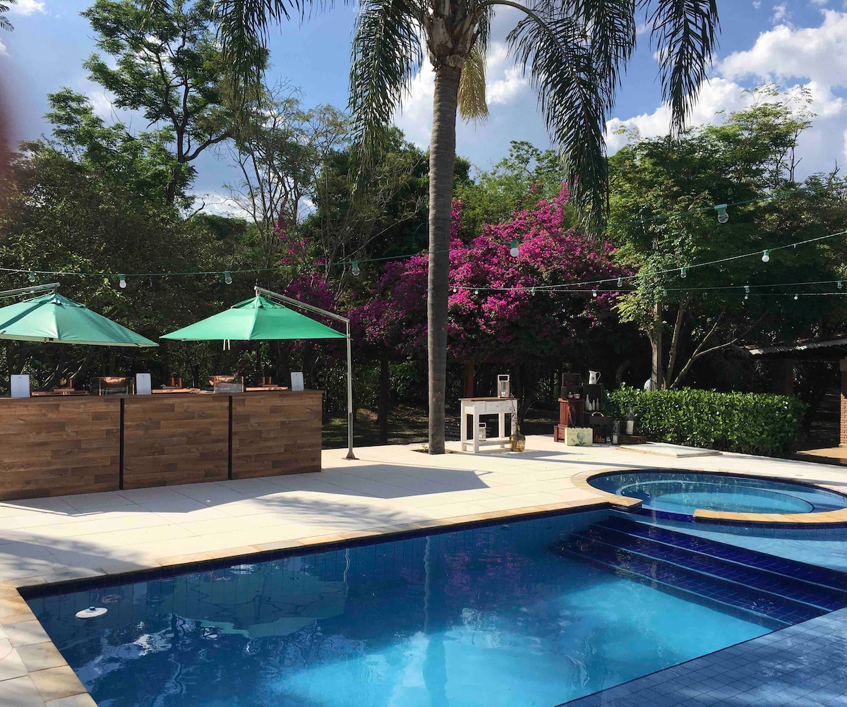 Chácara with cozy house with fireplace, heated pool, children's toys, gourmet space with minibar, barbecue , gas oven and stove. Clean air!! Neighborhood on the edge of the D.Pedro Highway, near one of the largest zoos in the state, ZOO PARQUE. A place for family and/or friends to enjoy peace and tranquility and wake up to the sound of birds singing. Ideal for those who want contact with nature. With native grove at the bottom of the plot where there is a treehouse.