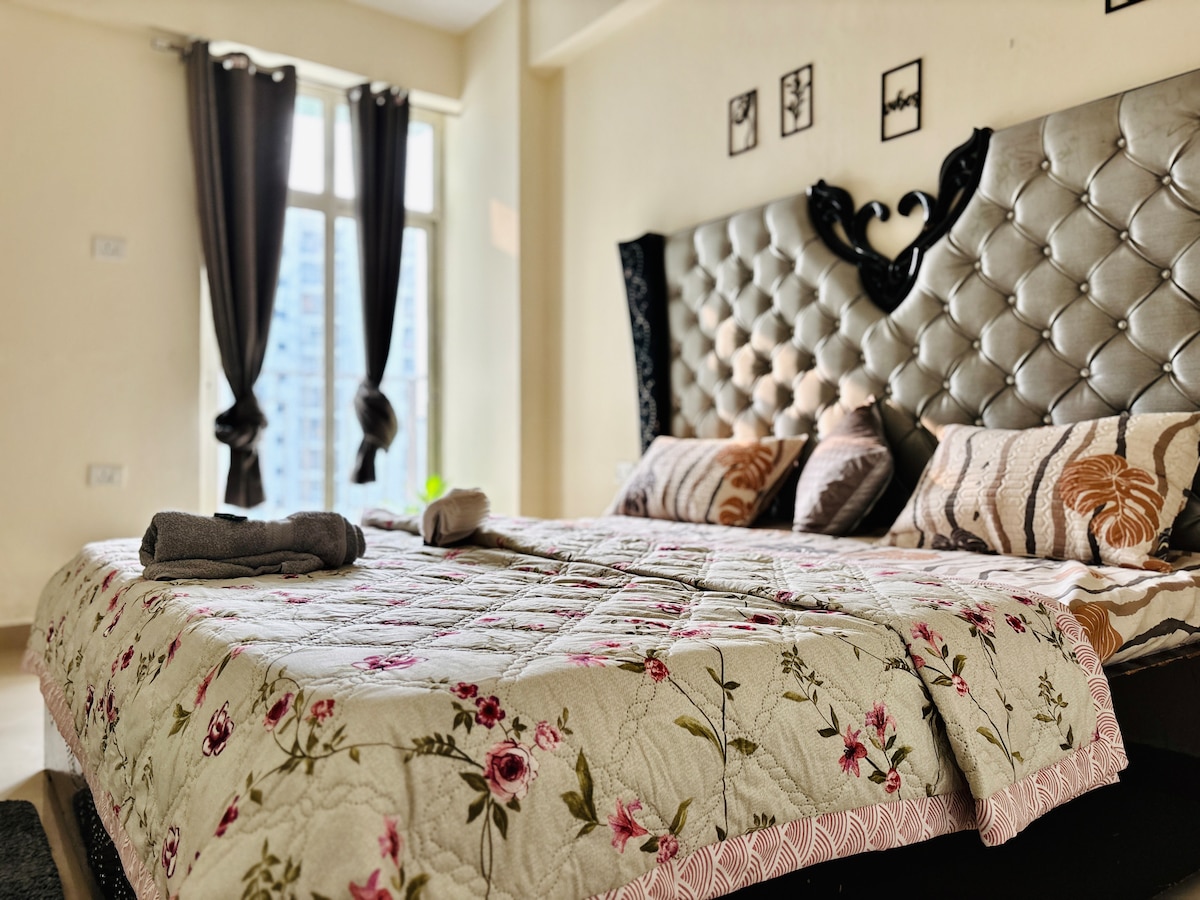 Introducing our exquisite luxury studio apartment: Nestled in the heart of the city, this opulent studio boasts modern elegance and unparalleled comfort. The open-concept design invites you into a spacious haven, bathed in natural light from the large windows that offer breathtaking city views. This apartment is on the 41st floor in one of the tallest sky scraper in Delhi - NCR. The apartment has a river facing view from the balcony!!