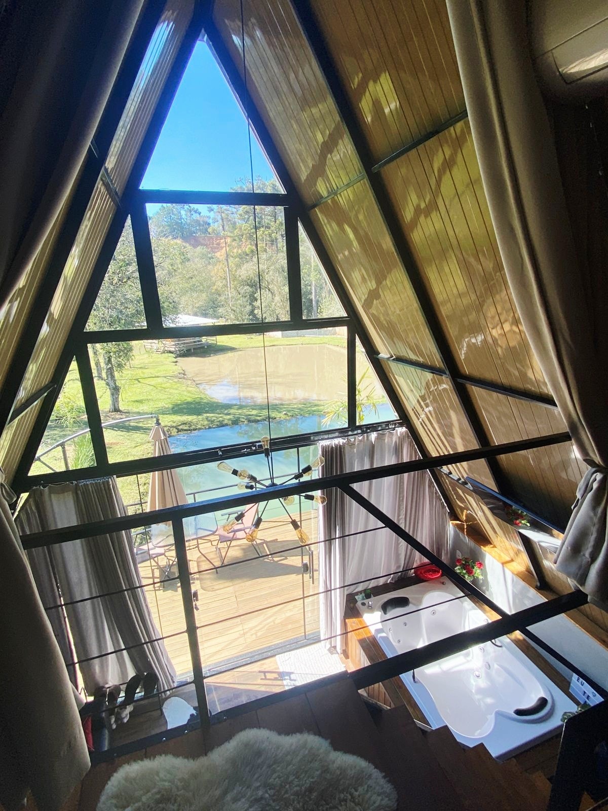 Relax in this unique and peaceful place, Cabana do Sossego is the ideal place for couples who want to enjoy the peace of being surrounded by trees, have a coffee on the deck overlooking the river and enjoy a glass of wine in front of the fireplace after a day of eco-adventure in the land of waterfalls, all just 3 km from the city center. Schedule your stay now!