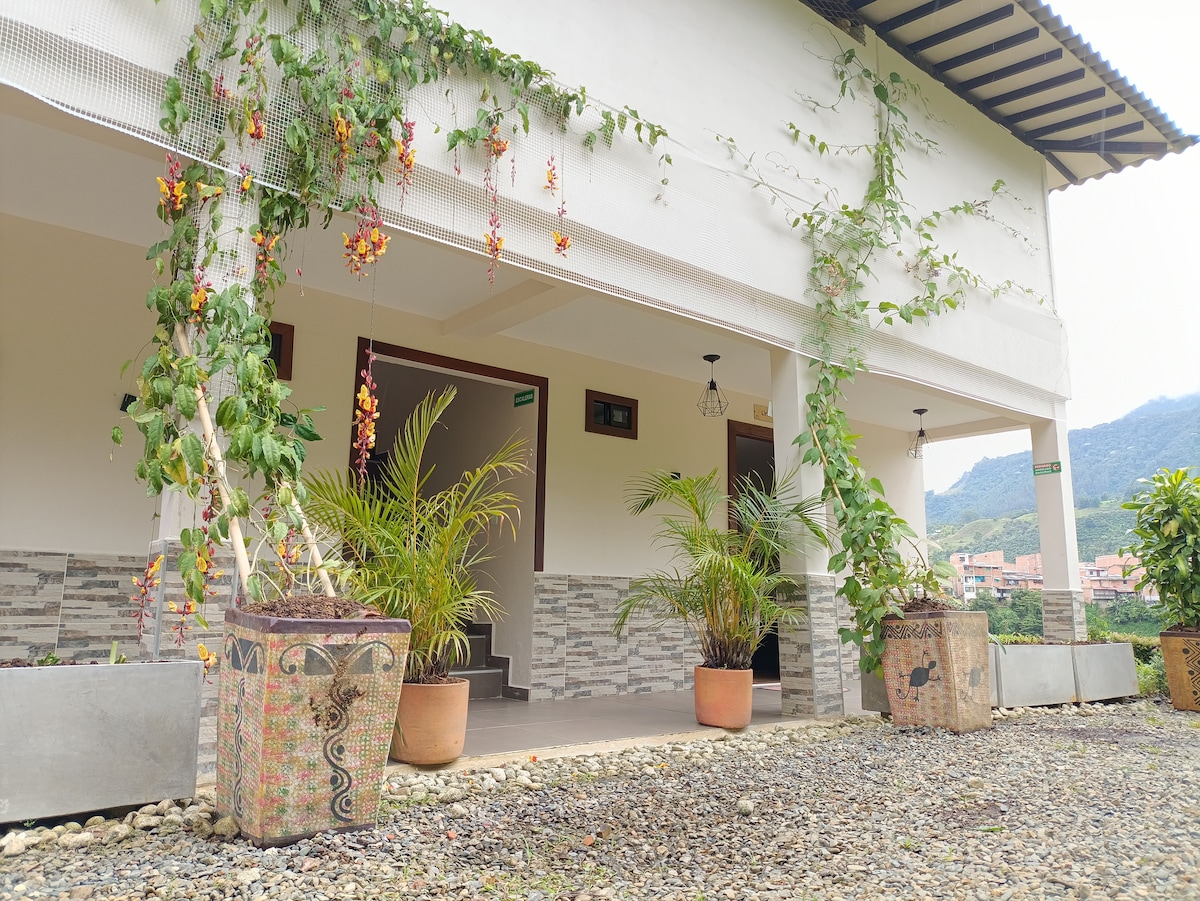 Enjoy a unique experience in this charming house in a beautiful sector of Jardín, a few blocks from the park, but far enough away to offer you peace and serenity. Enjoy the garden, fruit trees, stream and the company of birds and squirrels without having to go to the countryside Wi-Fi ✔ Network ✔ Discount long-term stays ✔ Nature in your window Private transport ✔ option in comfortable 4x4 vehicle (extra cost) Wake up to the birds singing and experience the magic of Jardín!