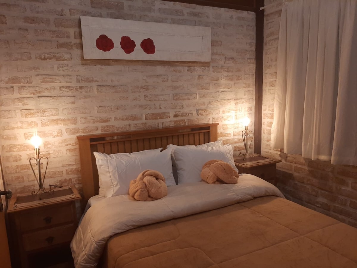 An excellent stone house for a couple, very warm room, with great location within the city of Monte Verde, 5 minutes by car from Monte Verde Avenue (main), close to cachaçaria, market, bakeries, chocolate and soap factory, also close to Sol Nascente Avenue (another avenue with shops). Great access. - Spacious bathroom - Full kitchen with a MINIBAR - We don't have an oven, only a stove -Garage -Wi-Fi -Smart TV (youtube, netflix…) We'd love to have you!