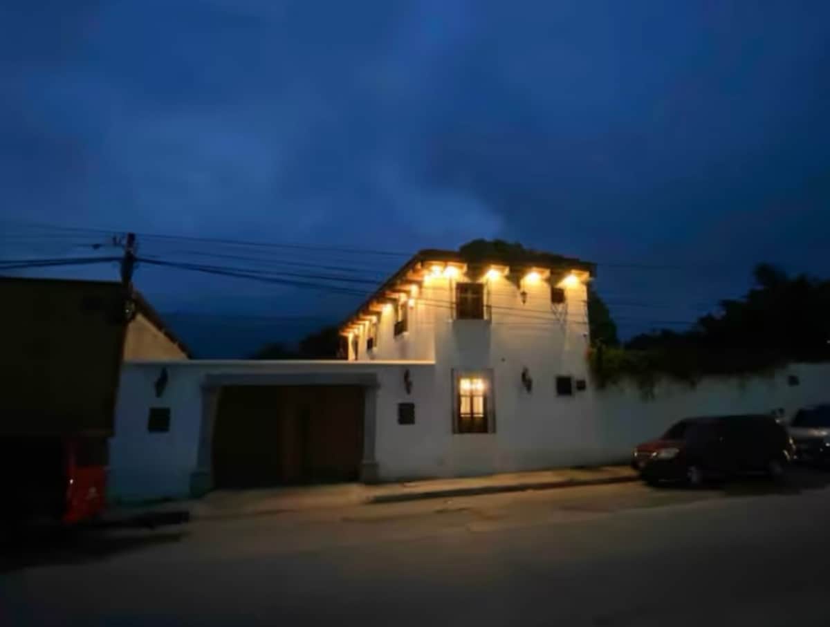 Welcome! Beautiful house with a Colonial Provenzal architectural style, offers a safe and cozy stay, to enjoy with family and friends, located seven minutes from Antigua, Guatemala. It offers a garage for one vehicle, a living room with a fireplace, a fully-equipped kitchen, elegant double-height ceilings, a central garden with a clay pot, two secondary bedrooms and a full shared bathroom, a master bedroom with a tub and private toilet, a laundry room, and a terrace with beautiful mountain views