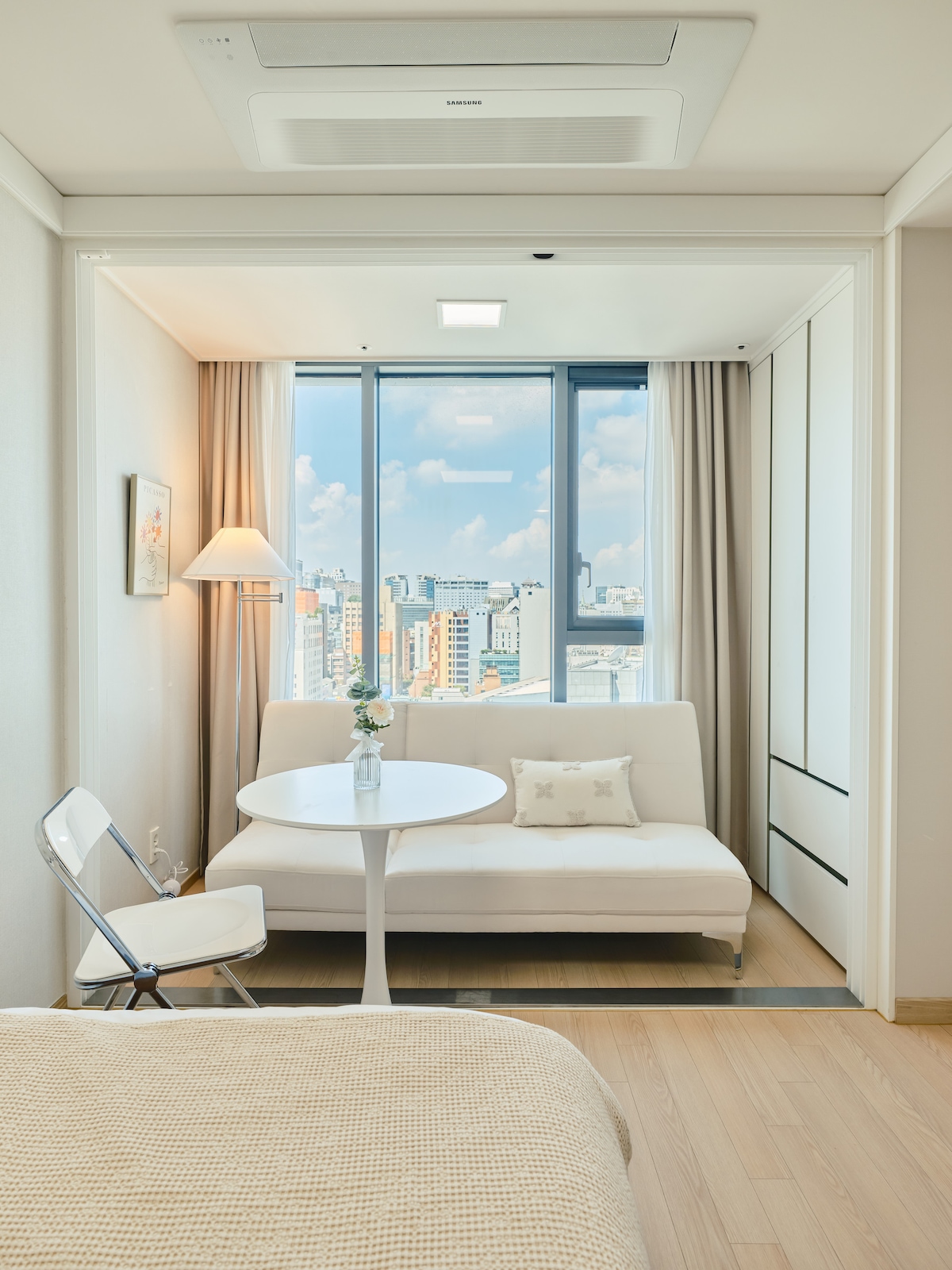 A newly built Residence within 3 minutes of 2 subway stations *Reception & Luggage Storage & Guest Lounge: B1F (English & Chinese-speaking staff available, breakfast service (paid)) *non-smoking property. fine: 150,000 won. *A Coffee machine & welcome coffee capsule, bidet ,drinking water purifier *Everything you need, just like home. *2 guests will use one bed. If you prefer separate beds, please request in advance. (paid) *For 3 or more people, a sofa bed will be set up as a bed.